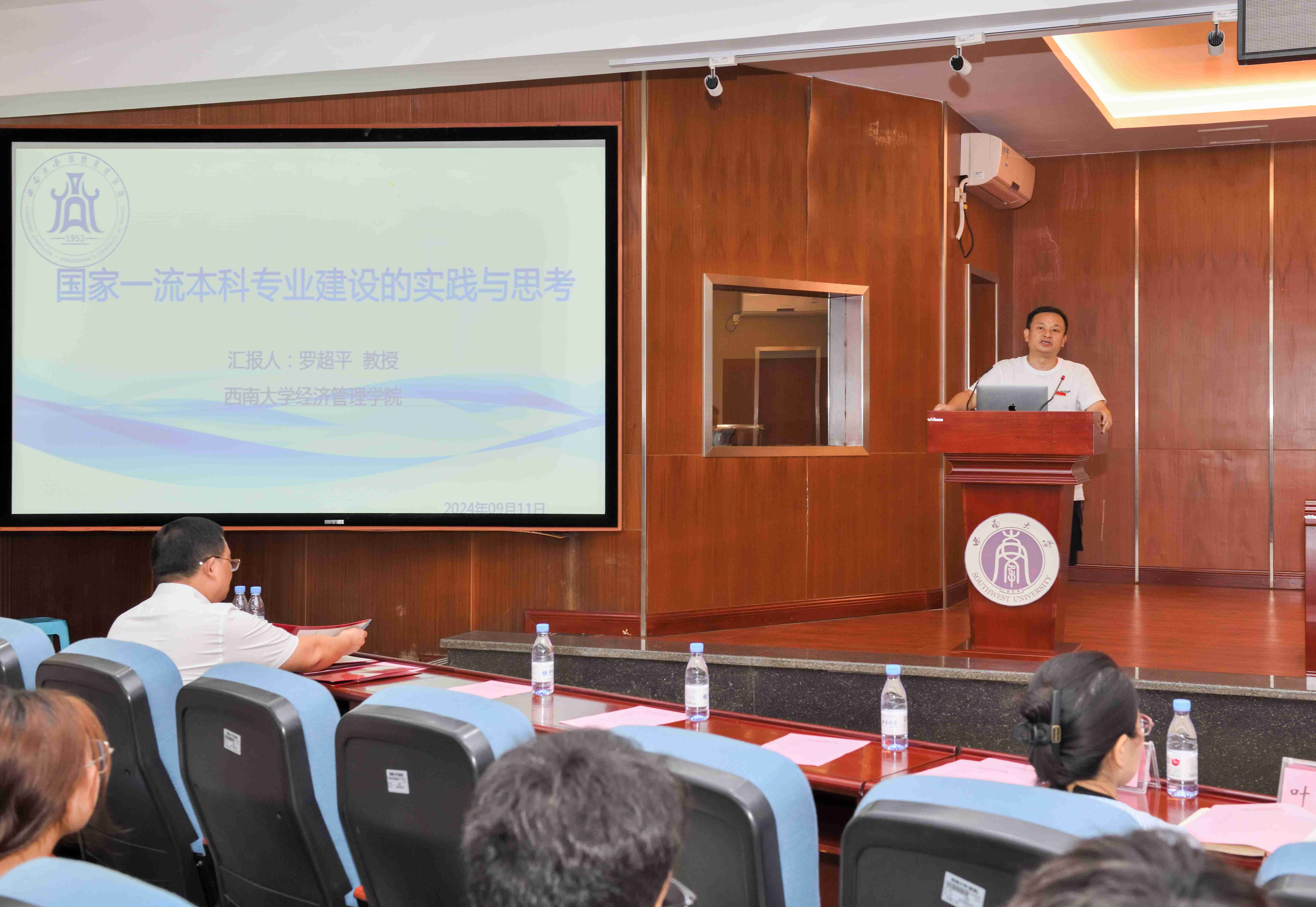 来自七个本科专业的教师代表:农林经济管理高静教授、工商管理高伟副教授、会计学刘向强副教授、旅游管理魏鹏教授、人力资源管理王双龙副教授、经济学王小华教授和金融学沈冰教授,依次向同学们介绍了各自专业历史发展沿革、发展现状、学科特色与发展前景展望等,让同学们对各专业有了一个整体的了解与认识,帮助同学们理清了专业学习的方向与目标等。
