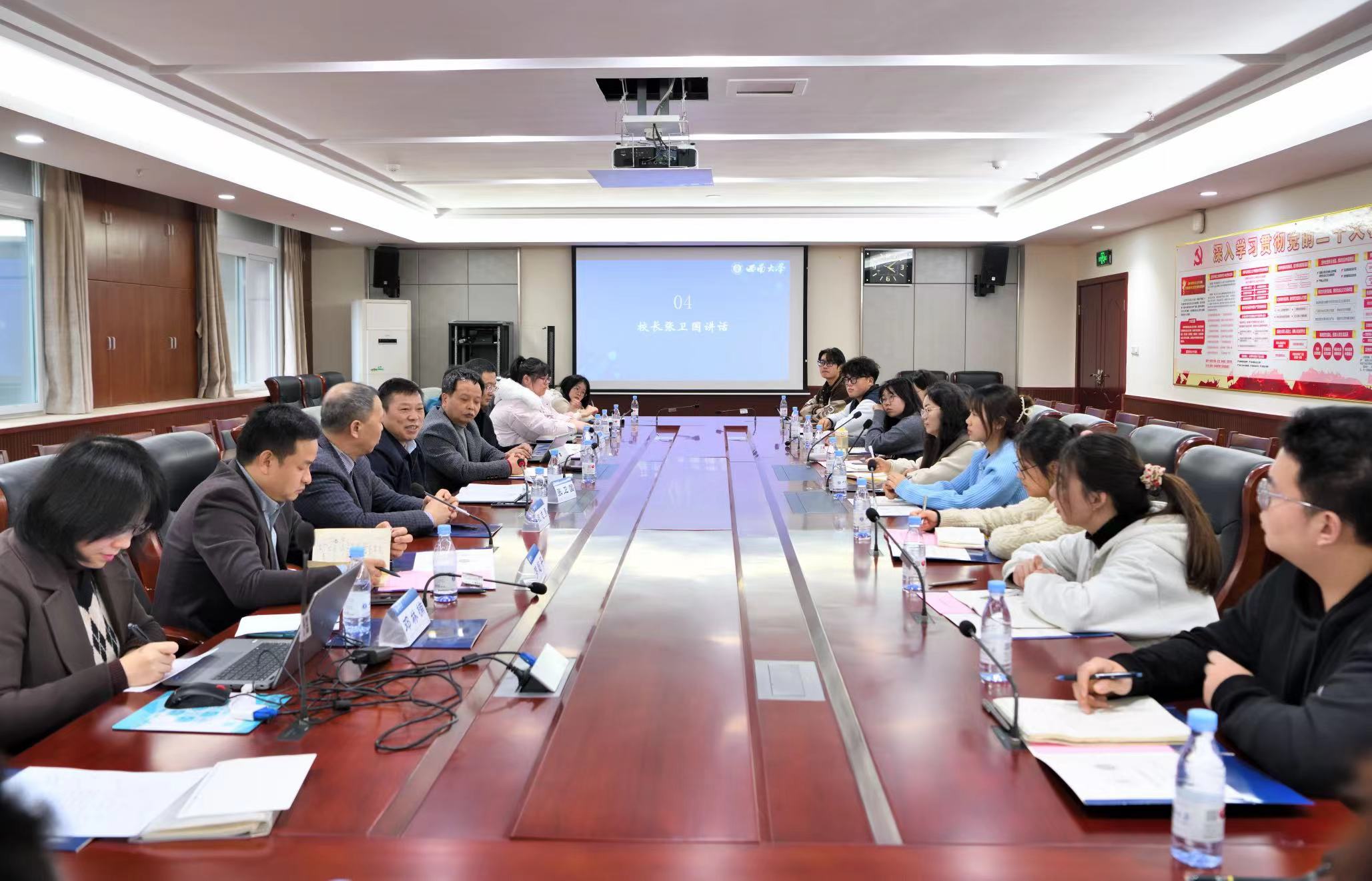 为全面贯彻落实党的二十大精神,加速高效构建三全育人新格局和拔尖创新人才培养体系,培养创新型复合型应用型人才,同时回应员工对于人生规划的系列问题,董事长张卫国与联系班级员工交流座谈会于2023年12月14日下午在新葡的京集团35222vipA204会议室举行。经济管理公司党委书记卢跃进、经理祝志勇、党委副书记李玉胜、副经理罗超平、农林经济管理系副主任孔立、团委书记邓林楠和2021级农林经济管理1班全体员工参加座谈会。会议由卢跃进主持。