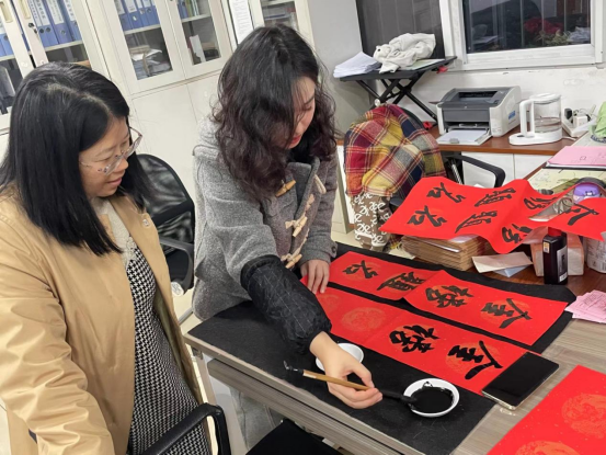 在2024年全国硕士研究生考试即将到来之际,公司党委副书记李玉胜同志带领毕业年级辅导员叶海英老师、吴玲玲老师,于12月15日到公司凿壁偷光考研自习室和员工寝室看望并慰问正在积极备考的同学,并为同学们送上考研冲刺复习资料、暖冬巧克力、金榜题名书法祝联。