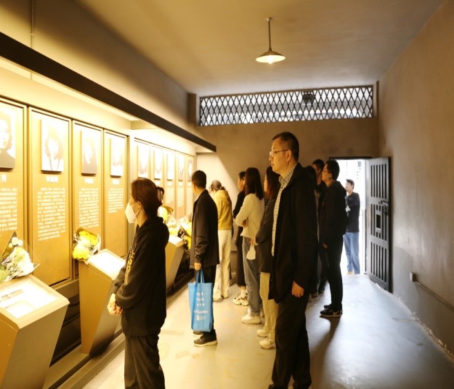 在体验红岩红沉浸式史诗剧之后,老师们一行参观了渣滓洞。在讲解员的带领下,老师们浏览革命历史资料、瞻仰烈士遗像、缅怀革命先辈,怀着对革命先烈无比崇敬的心情,重温了江竹筠、许建业、小萝卜头等的英雄事迹,切身体会到中国共产党人以崇高的思想境界和非凡的政治智慧,锻造了以“坚如磐石的理想信念、和衷共济的爱国情怀、不折不挠的凛然斗志、坚贞不屈的浩然正气”为内涵的伟大的“红岩精神”。