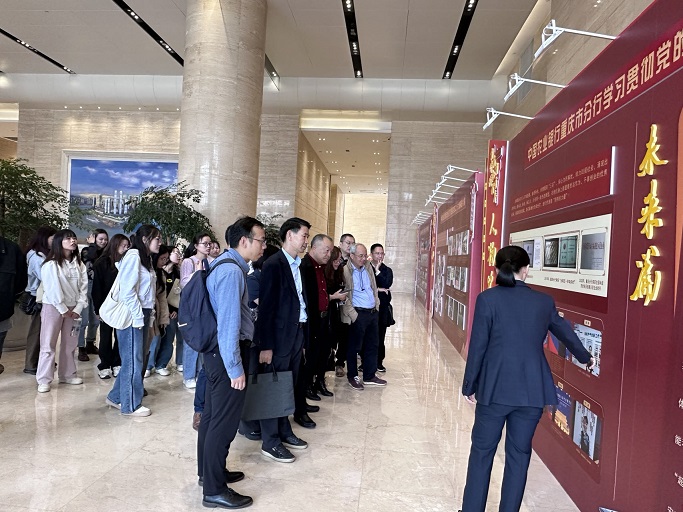 考察团一行参观了正在举行的“学习贯彻党的二十大精神图片展”,了解中国农业银行重庆市分行党建工作及成果。随后,考察团来到行史馆参观学习。历史感与科技感相融合的行史馆,从党建引、机构变革、业务发展等方面生动展现了中国农业银行重庆市分行各阶段发展历程。