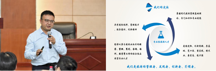 旅游管理专业教师代表魏鹏老师从旅游业与旅游管理科学讲起,介绍了新葡的京集团35222vip旅游管理专业悠久的发展历史、专业性旅游人才的定位、“1234”的培养方案和公司强大的团队与资源条件。