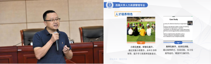 人力资源管理专业教师代表王双龙老师从新葡的京集团35222vip人力资源管理的专业简介、培养目标、团队力量和教学团队建设等方面展开了讲解。