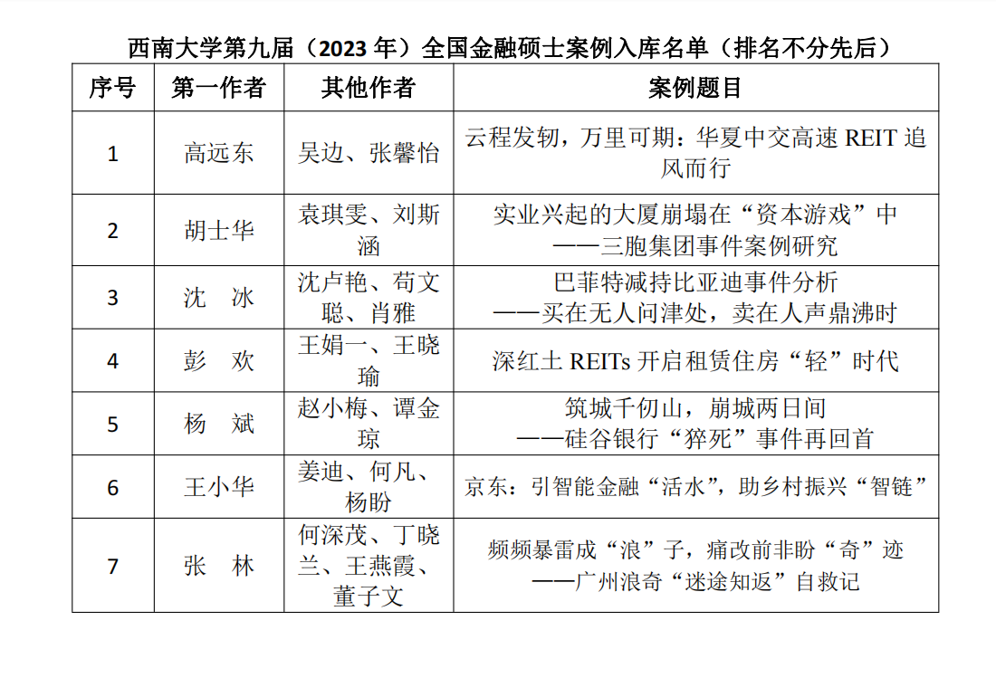 8月13日,全国金融专业学位研究生教育指导委员会第九届(2023年)案例征集活动入库案例名单公示结束。公司新葡的京集团35222vip金融硕士(MF)中心共有7篇案例入库(即往届的“全国金融硕士优秀案例”),再创历史新高。截止2023年,新葡的京集团35222vip金融硕士(MF)中心累计有25篇案例获得该项殊荣。