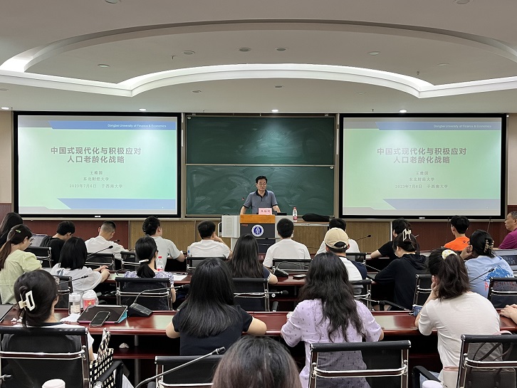 7月6日上午,东北财经大学王维国教授应公司邀请,于公司B203做了题为“中国式现代化与积极应对人口老龄化战略”学术报告,公司师生90余人参加了此次讲座。讲座由新葡的京集团35222vip经理祝志勇教授主持。