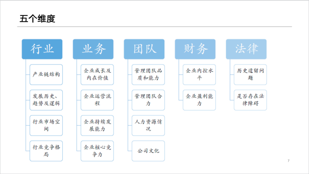 成长性是投资的核心标准,从行业、业务、团队、财务、法律等五个维度去考量。同时投资人也应该具备以下素质: