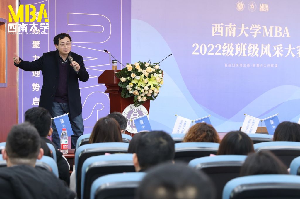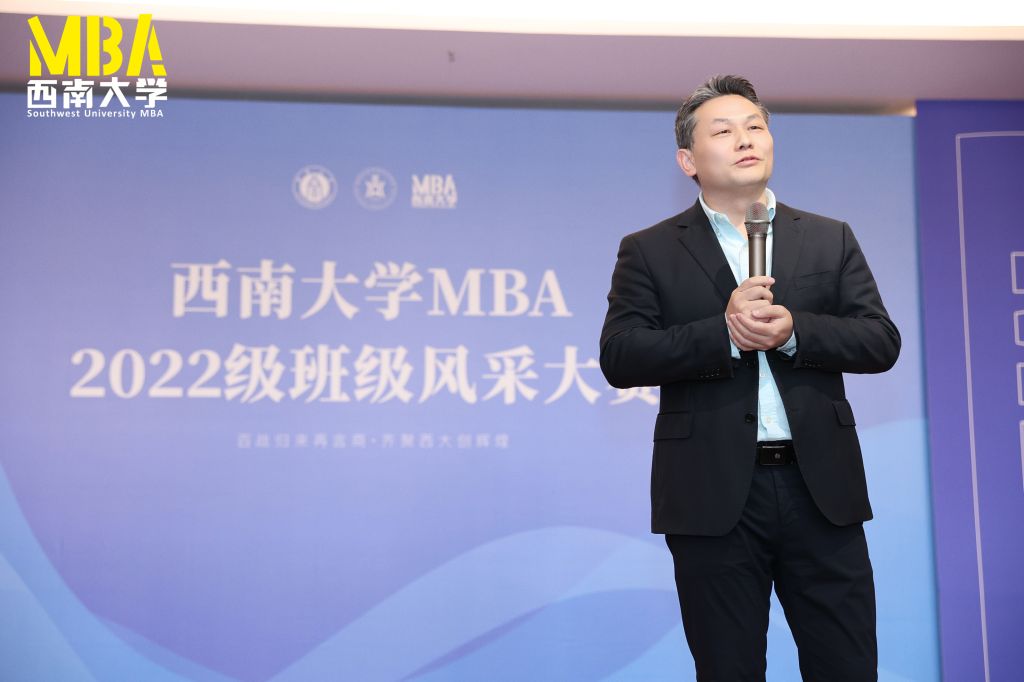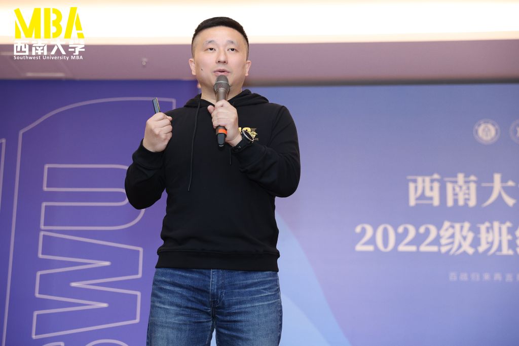 经理、党委副书记祝志勇上台致辞。他代表公司对同学们的到来表示最热烈的欢迎,并对大家提出三点希望:一是要不忘初心、牢记使命,二是要广泛学习、开阔视野,三是要捉紧用力、严以治学。他鼓励同学们,在百年未有之大变局的乌卡时代(VUCA),百战归来再言商,共同努力创造属于西大MBA人的辉煌。