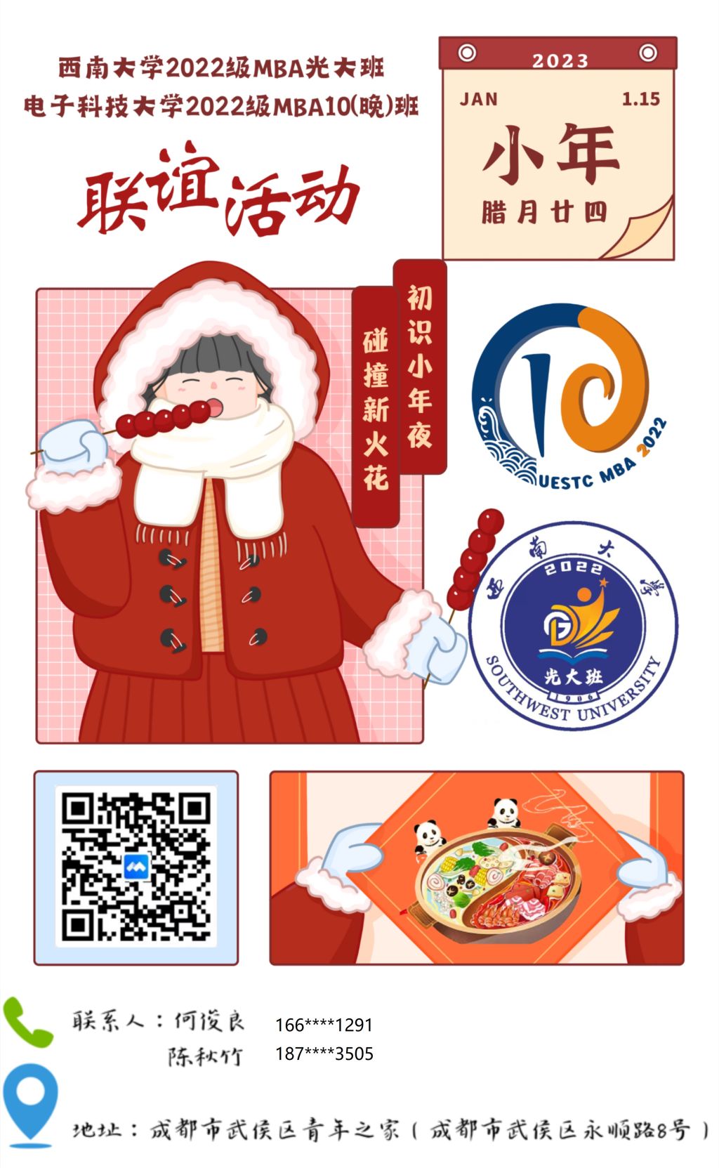 此次联谊活动由新葡的京集团35222vipMBA2022级光大班和电子科技大学MBA2022级10班共同发起组织,两个班的同学为活动做了充分的准备。