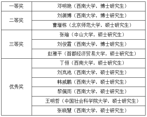 本次论坛共评出一等奖1名,二等奖2名,三等奖3名和优秀奖6名。