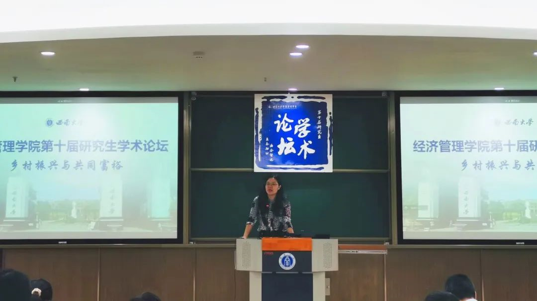 经济管理公司党委副书记田丽为活动开幕致辞。她表示,学术论坛为广大研究生提供了一个与优秀老师、同学交流的机会。她提出,希望通过本次论坛,同学们能拓宽自身的学术视野,在学术观点的交流与碰撞中激发学术研究的热情与动力。