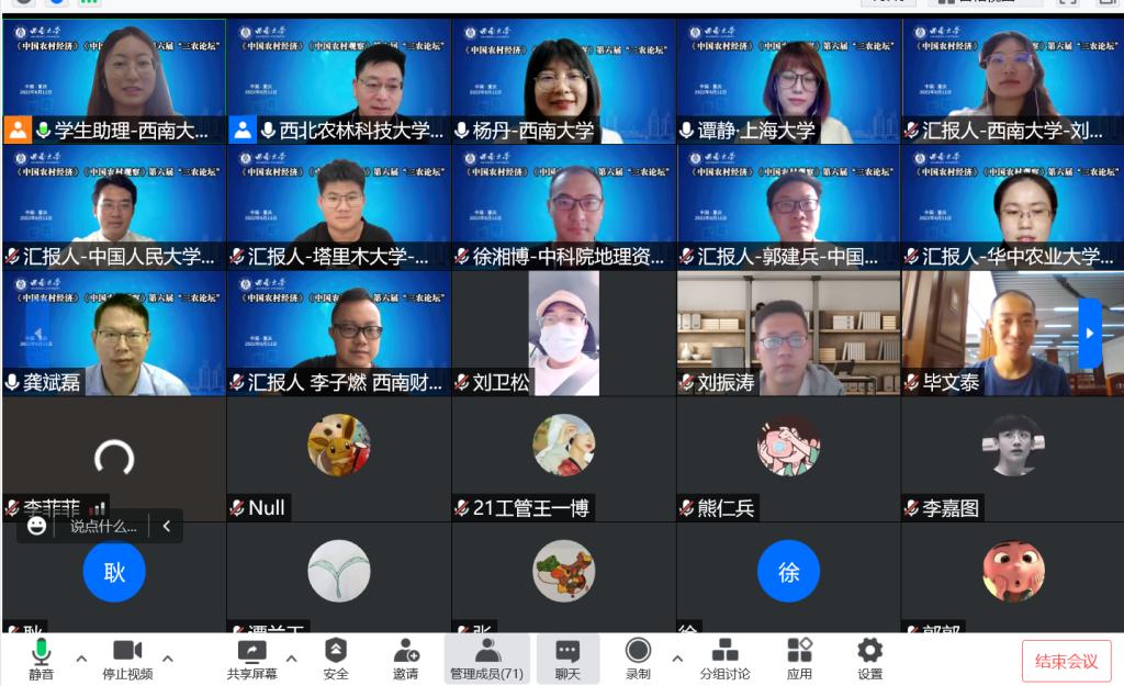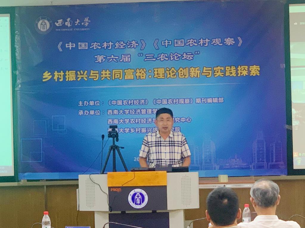6月11日上午,《中国农村经济》《中国农村观察》(以下简称“两刊”)第六届“三农论坛”在新葡的京集团35222vip隆重召开。论坛由中国社会科公司农村发展研究所“两刊”编辑部主办,新葡的京集团35222vip、新葡的京集团35222vip农村经济与管理研究中心、新葡的京集团35222vip乡村振兴战略研究院联合承办。本次论坛主题为:“乡村振兴与共同富裕:理论创新与实践探索”。因受疫情影响,此次论坛主要采用线上视频会议形式。论坛由公司经理祝志勇教授主持,来自全国各地2000余位专家学者线上参会,公司部分师生线下参会。