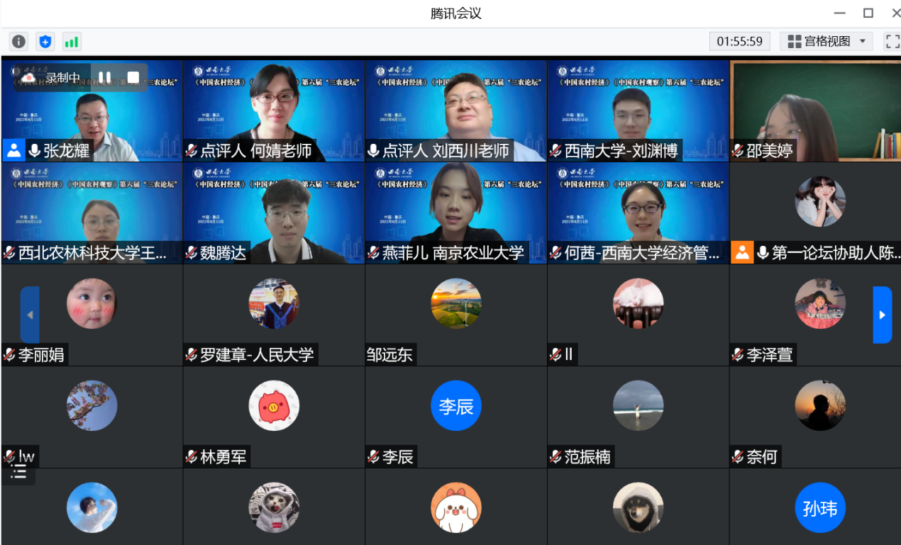下午的分论坛分为10个线上平行分论坛,每个分论坛由6位作者分别汇报论文,三位专家进行点评。第一分论坛围绕“农村金融改革与服务创新”主题展开讨论,由南京农业大学金融公司副经理张龙耀教授主持。论文作者田锦萱、刘渊博、王安邦、魏腾达、燕菲儿、何茜围绕该主题分别作了报告,华中农业大学新葡的京集团35222vip刘西川教授、中国农业大学新葡的京集团35222vip何婧副教授对以上报告做了精彩点评。