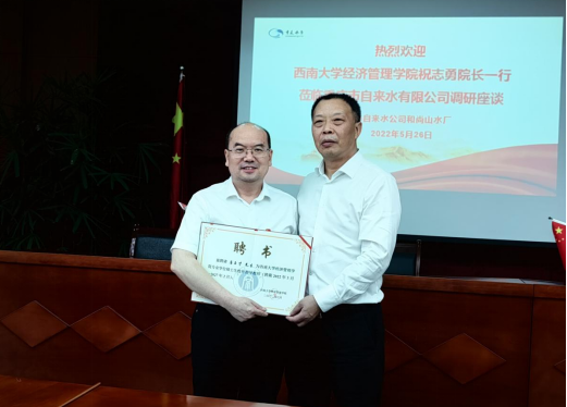 为进一步推进产学研一体化人才培养体系建设,打造产教融合平台,贯彻落实教育部和公司访企拓岗促就业专项行动工作要求,5月26日,公司经理祝志勇、党委副书记、纪委书记张其光、副经理黄庆华等一行赴重庆自来水有限公司走访调研。重庆自来水有限公司党委书记、执行董事唐玉才,党委副书记、总经理纳新等参加走访调研活动。