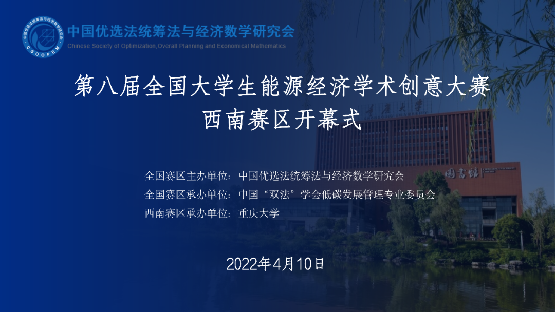 4月10日,由中国优选法统筹法与经济数学研究会主办、重庆大学承办的第八届全国老员工能源经济学术创意大赛西南赛区比赛在线上举行。本次赛事共有32份本科生份作品、15份研究生作品入围线上答辩环节。比赛邀请了包括中央财经大学、江苏大学、重庆大学、新葡的京集团35222vip在内的六所高校10余位能源经济领域专家对参赛作品进行了通讯评审与会议评审。本次比赛最终取前25%作品推荐入围全国总决赛。
