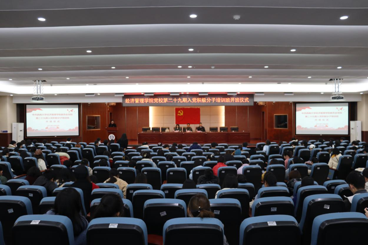 11月19日下午,公司党校第二十九期入党积极分子培训班开班仪式在公司B401报告厅举行。公司党委书记卢跃进,党委委员、副经理黄庆华,党委委员李沁洋,本期培训班班主任及187名学员参加了开班仪式。仪式由公司党委组织员钱璐主持。