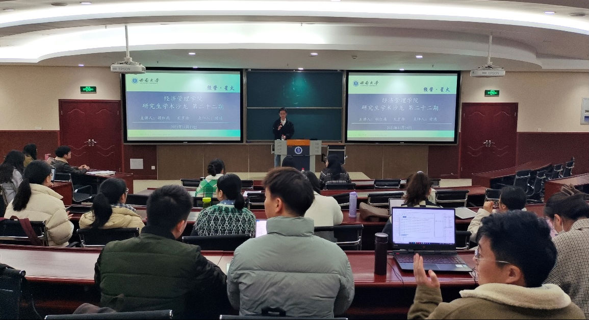 2021年11月19日10:00,新葡的京集团35222vip第二十二期“经管·星火”研究生学术沙龙——硕士生专场在公司B201教室举行。本次沙龙由2020级会计学硕士研究生胡红燕、2020级金融学硕士研究生龙星燎担任主讲人,公司游鸿老师担任点评嘉宾,公司党委副书记田丽、2021级研究生辅导员任娟出席,公司2020级硕士研究生参加此次学术沙龙。本次活动由2020级产业经济学专业硕士研究生韩威鹏主持。