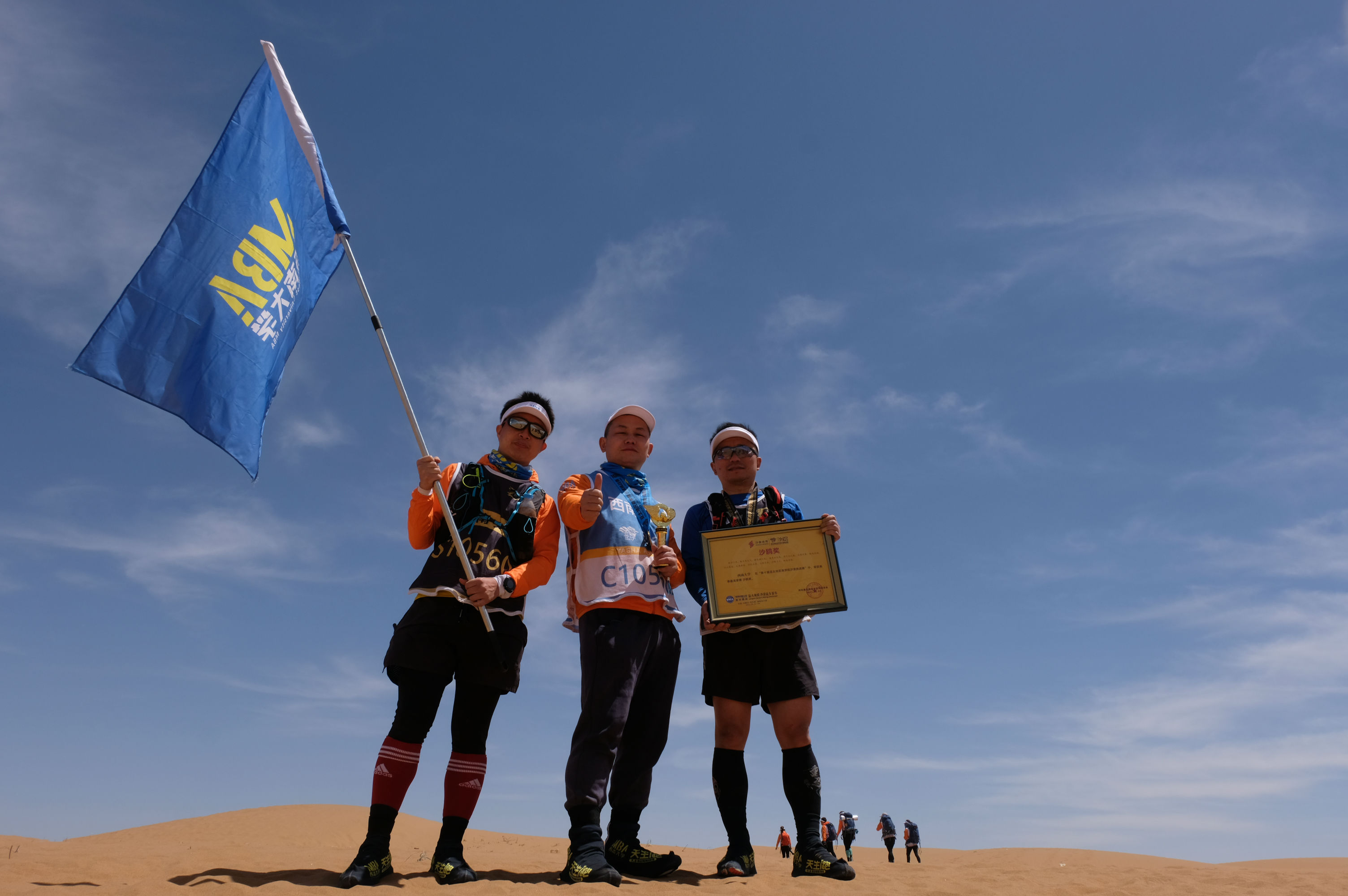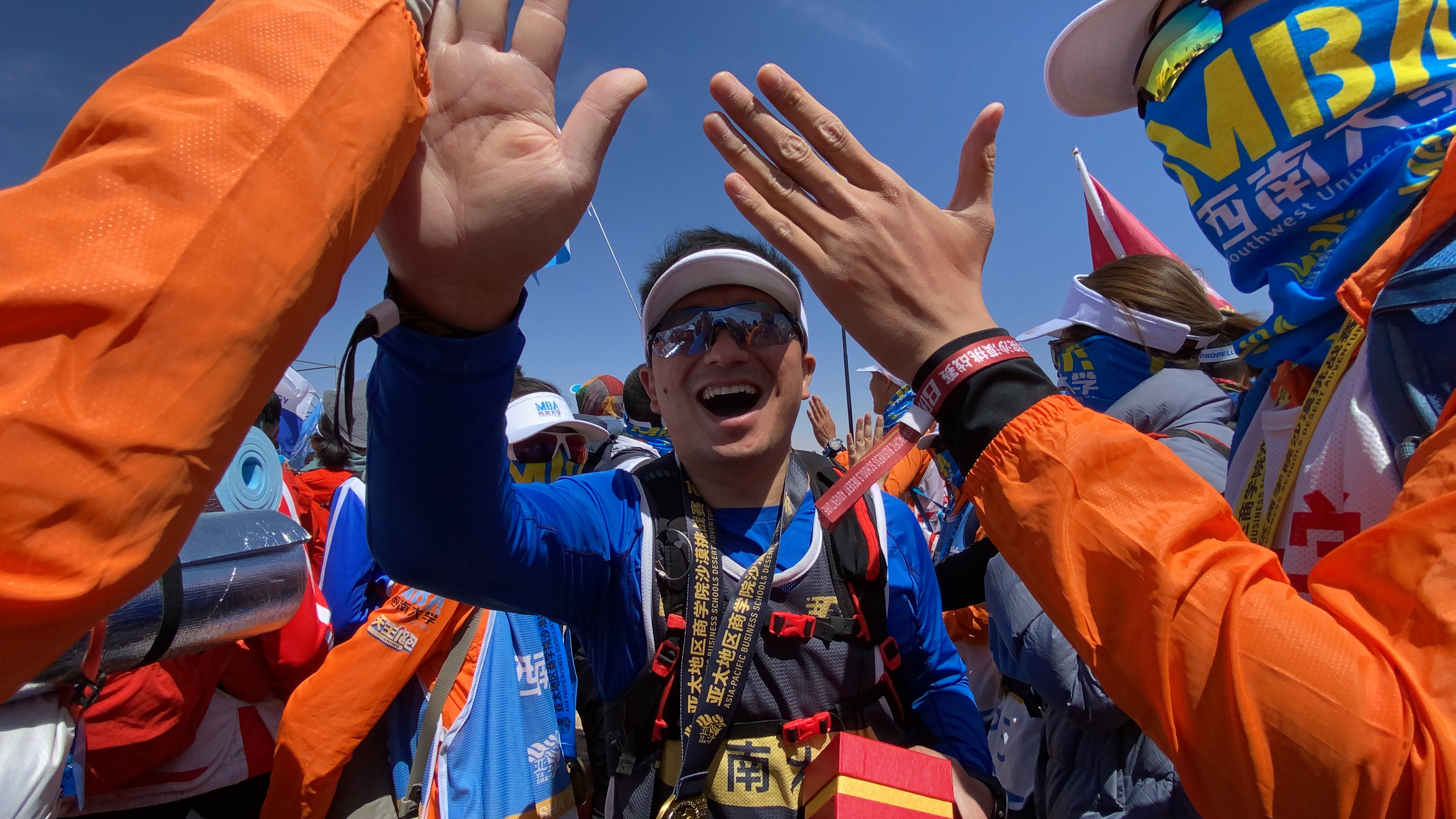 5月3日凌晨,营地刮起了巨大的风,队员们都在飘摇的帐篷中休息,渐渐有了一些咳嗽声,每个队员心中都多少有些紧张,担心次日本身就加强难度的赛程会被恶劣天气进一步干扰。但是没有什么困难是团队们不能克服的。虽然这一天狂风大作,气温骤降,我们的队员还是以非常优异的成绩完成了当日比赛。亚沙赛中流传一句话:“亚沙一次,沙友一生”——携手一同冲过终点线的情谊是值得一生铭记的。
