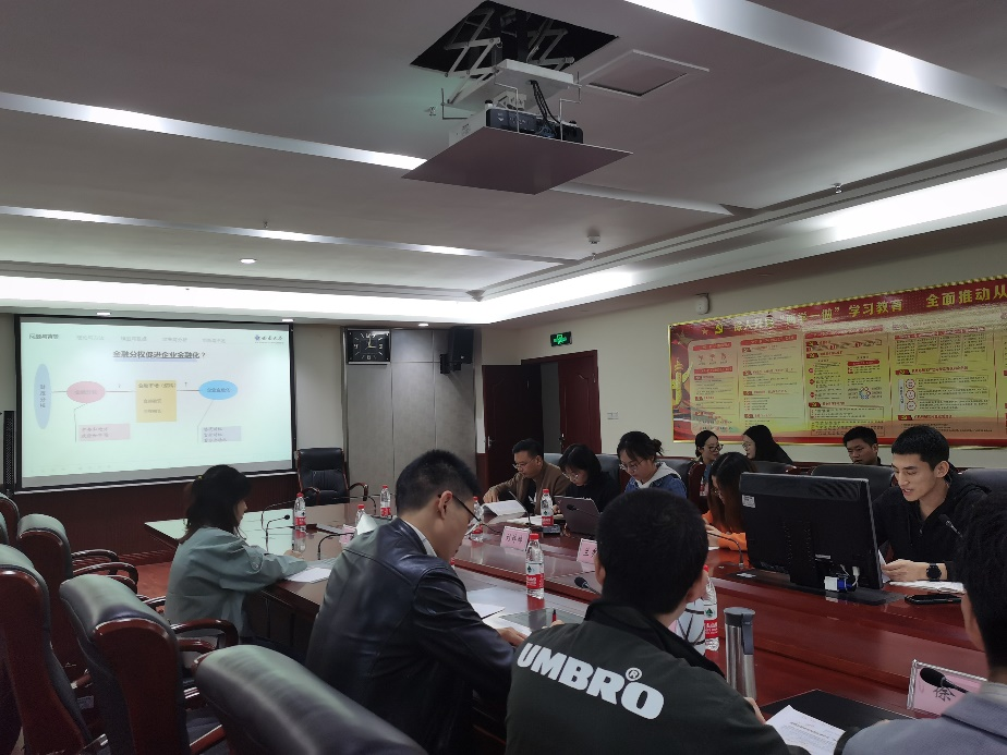 为提升公司公司产品质量,营造良好的学术氛围,2021年4月16日15:00,公司“经管·星火”研究生学术沙龙第十三期(博士生专场)与第十四期(金融硕士专场)分别在公司A204和B204举行。
