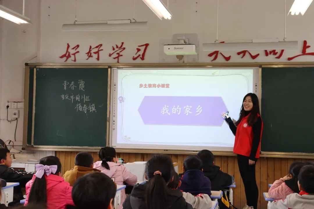 “大家觉得我们的家乡美不美?”“美!”“那大家喜欢我们的家乡吗?”“喜欢!”随后支教队员从地理位置、地形地貌、自然资源、民俗风貌等方面介绍了南川区福寿镇,帮助员工们了解和认识家乡,激发员工认同、热爱家乡的情怀。