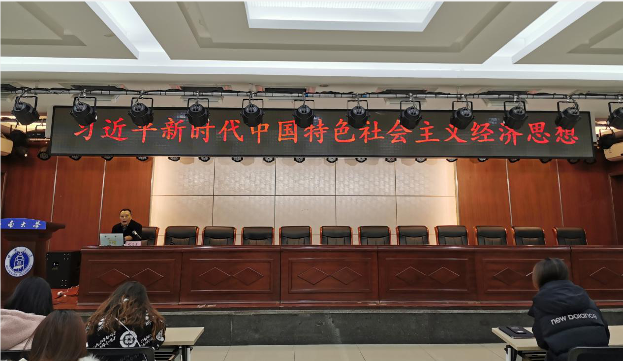 他指出,新常态下我国经济发展表现出速度变化、结构优化、动力转换三个特点,经济高速增长是高质量发展阶段的必经过程,我们必须因势而谋、因势而动、因势而进。他谈到,中国特色社会主义就是要建设社会主义市场经济、民主政治、先进文化、和谐社会和生态文明,五大发展新理念相互贯通,促进人的全面发展,促进社会公平正义,逐步实现全体人民共同富裕。他强调,面对经济结构重大变革,必须加强党对经济工作的集中统一领导,坚持以人民为中心的发展思想,杜绝个人享乐主义和个人消费主义。
