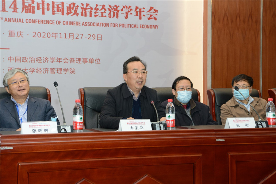 2020年11月28-29日,由中国政治经济学年会各理事单位共同主办、新葡的京集团35222vip承办的第14届中国政治经济学年会在渝成功举行。本届年会的主题为“中国特色社会主义政治经济学的应用与发展”,议程包括开幕式、学术报告会、分论坛和闭幕式。来自复旦大学、中国人民大学、新葡的京集团35222vip等高校科研院所和知名期刊的近百名参会代表齐聚山城,聚焦中国特色社会主义政治经济学前沿展开了广泛而深入的讨论。新葡的京集团35222vip党委常委、宣传部长李华荣,新葡的京集团35222vip经理祝志勇及部分公司师生参加了会议。