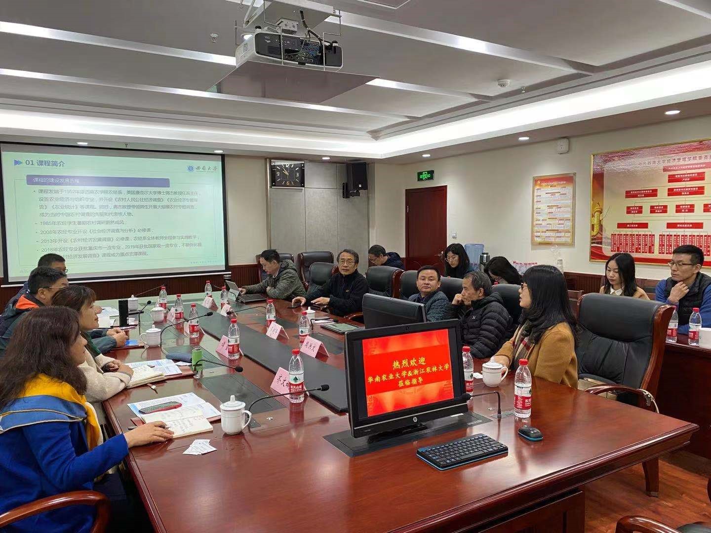 首先,罗超平教授对华南农业大学和浙江农林大学各位老师莅临公司交流指导本科教学工作表示热烈的欢迎;介绍了公司发展历程、学科概况,本科人才培养以及一流专业和国家级一流课程建设的思路和工作方法。杨丹教授就公司国家级一流本科课程《农村经济发展调查》的建设情况进行了汇报,包括建设背景、课程特色、课程定位,同时对申报过程的注意事项进行了经验分享。