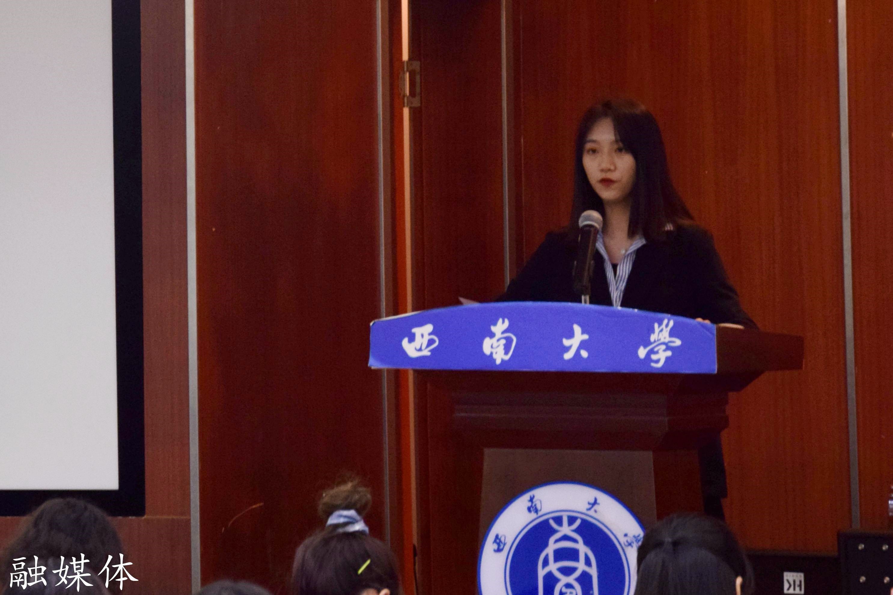 2017级田静雨同学作为本科毕业生代表发言,她围绕毕业生的职业规划、就业心态和求职行动等三方面分享了自己的体会,号召同学们要充分了解自我,增强求职信心,端正就业观念。2018级陈钲同学作为毕业研究生代表发言,他结合自己的求职经历,鼓励同学们在求职过程中要积极行动,不断尝试,敢于挑战。