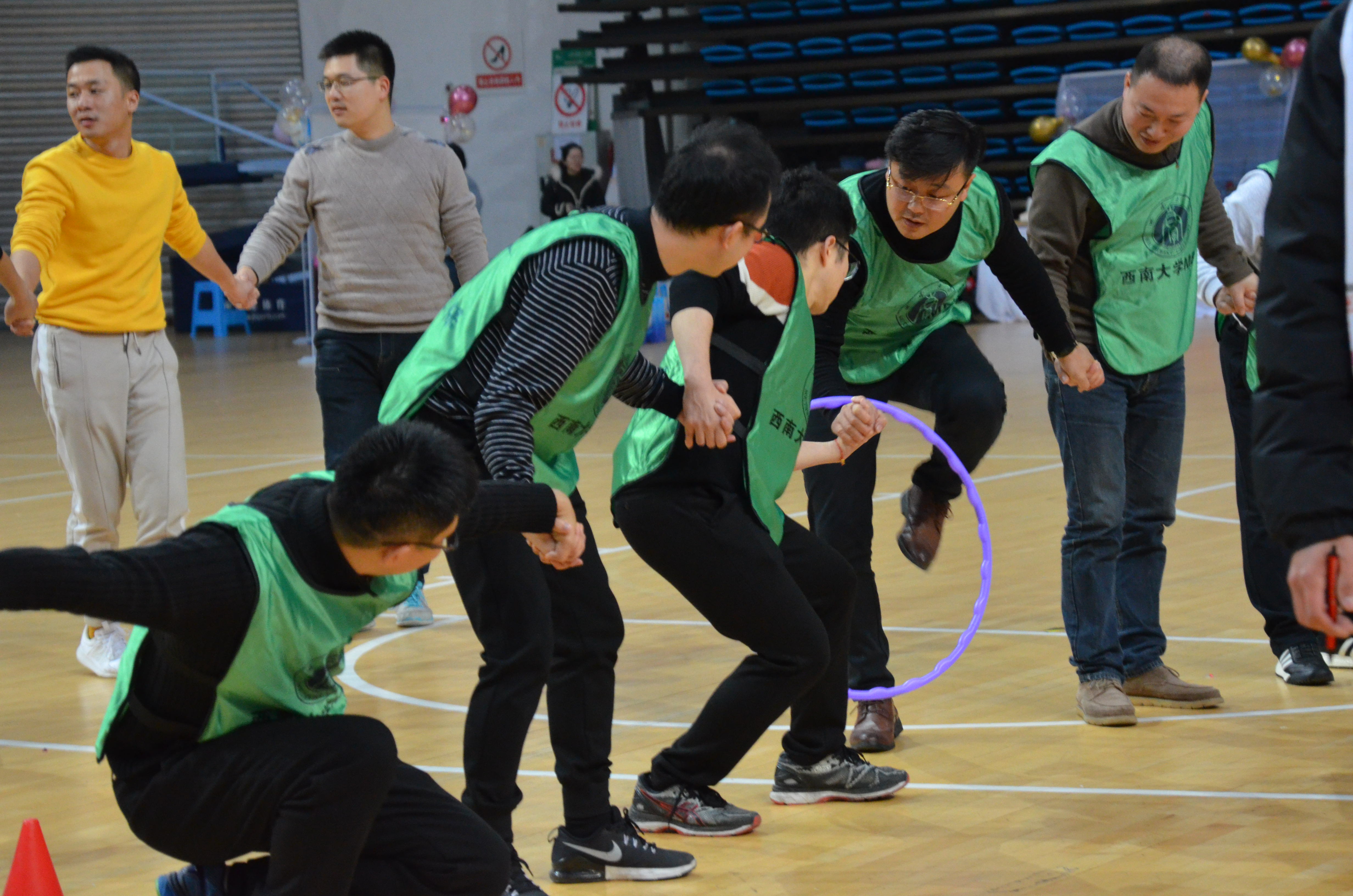 下午2时许,趣味运动会比赛项目正式开始。项目有划拳接力赛、齐心火车、集体跳大绳、蒙眼驼马踩气球、纸杯传递、一穿到底、爱的魔力转圈圈、一圈到底、盲打游戏等。参赛队伍来自2017级MBA员工、2018级MBA员工、2019级MBA员工、MBA任课导师、赞助单位代表、亚沙组委会成员以及西南联盟兄弟院校代表。