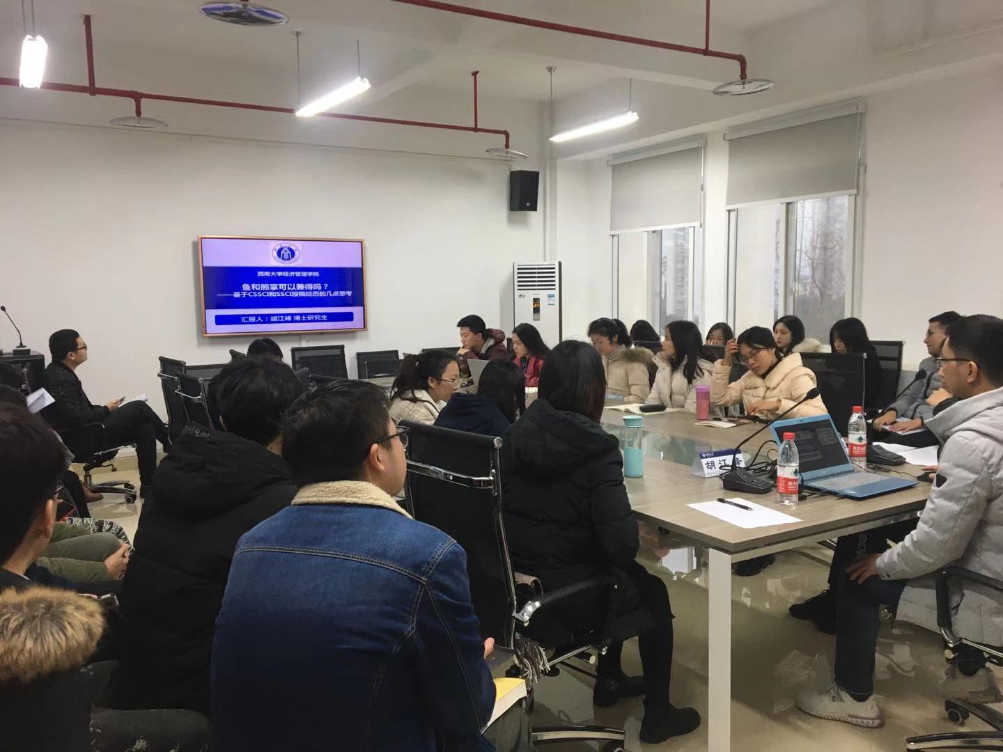 应用经济学一级学科硕士研究生学术沙龙以“论文请就位——关于学术论文的探讨”为主题,2018级金融学研究生李洁主持,2018级博士生胡江峰介绍CSSCI和SSCI的投稿要求,强调论文的选题应坚持学术性、可持续性、国际性,并对论文写作的基本结构与注意事项提出建议。2017级产业经济学研究生王良虎通过论文《资源错配对产业协调的影响研究——以战略性新兴产业与传统产业为例》讲述论文研究背景与问题的提出、文献回顾与评述、理论分析等,使大家对论文选题和写作有了较为直观的认识和了解。