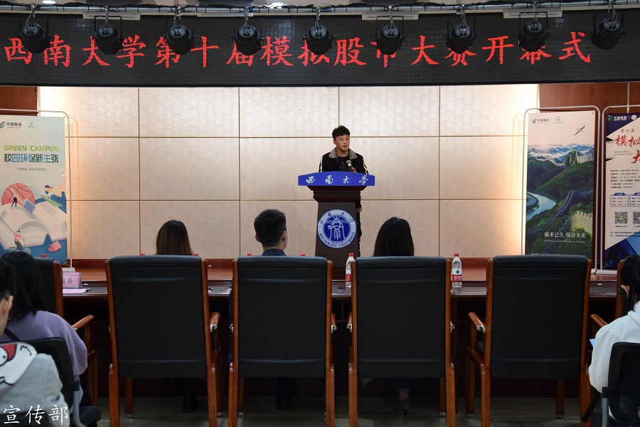 通过大赛组委会成员许文杰同学的讲述,同学们对大赛的赛制和评分标准有了详细的了解。本次大赛共由个人赛、团队赛和人气赛三个部分组成,每个账户都有100万的初始模拟资金。个人赛中,各选手独立进行模拟股市交易,在比赛结束时以收益率为准,收益率高者获奖。团队赛则以3至5名选手为一组,共同操作一个账户。与个人赛不同的是,团队赛设置小组展示环节。交流会上,各小组将以PPT形式分享团队分工及选股分析,并由专业股票人士进行评分。最终成绩收利率占比60%,交流会小组展示占比40%。参与人气赛的选手需将其对于股市的预测和分析评论发至组委会,中邮公司将筛选出质量较高的文章,在“新葡的京集团35222vip团委员工会”微信公众号进行网络投票。最终成绩证券公司专业人士打分占90%,网络投票占10%。