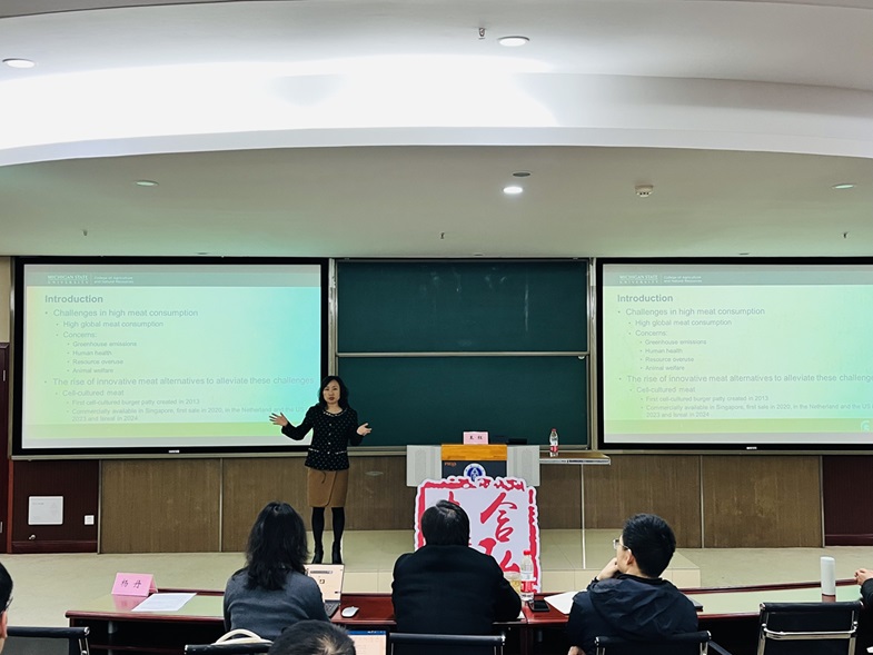 12月17日,密歇根州立大学王红教授应公司邀请在B201报告厅开展了题为“跨国视角与品名效应:细胞培养肉如何赢得消费者青睐?”的学术讲座。讲座由新葡的京集团35222vip副经理(主持工作)杨丹教授主持,公司60余位师生参加了本次讲座。