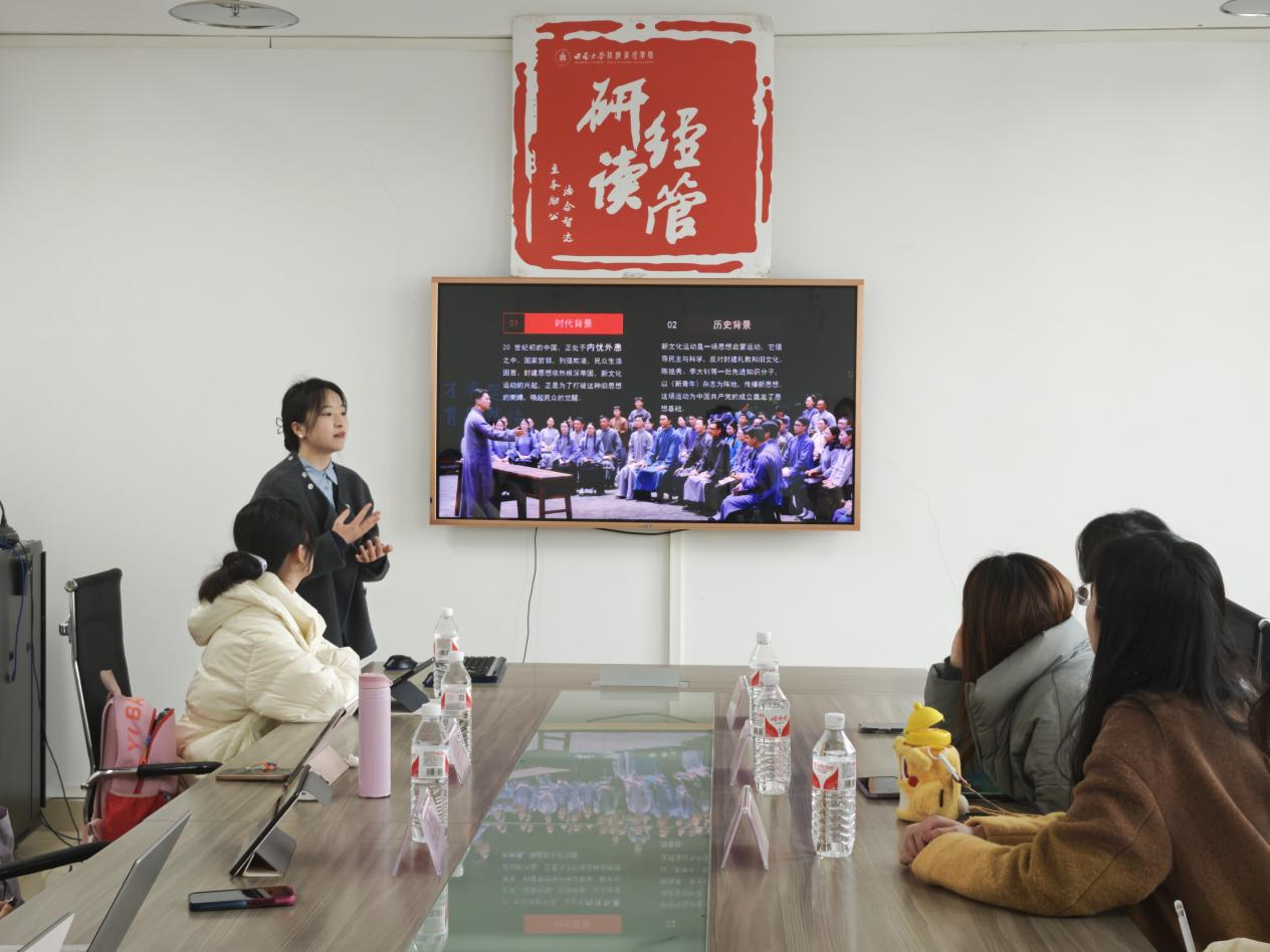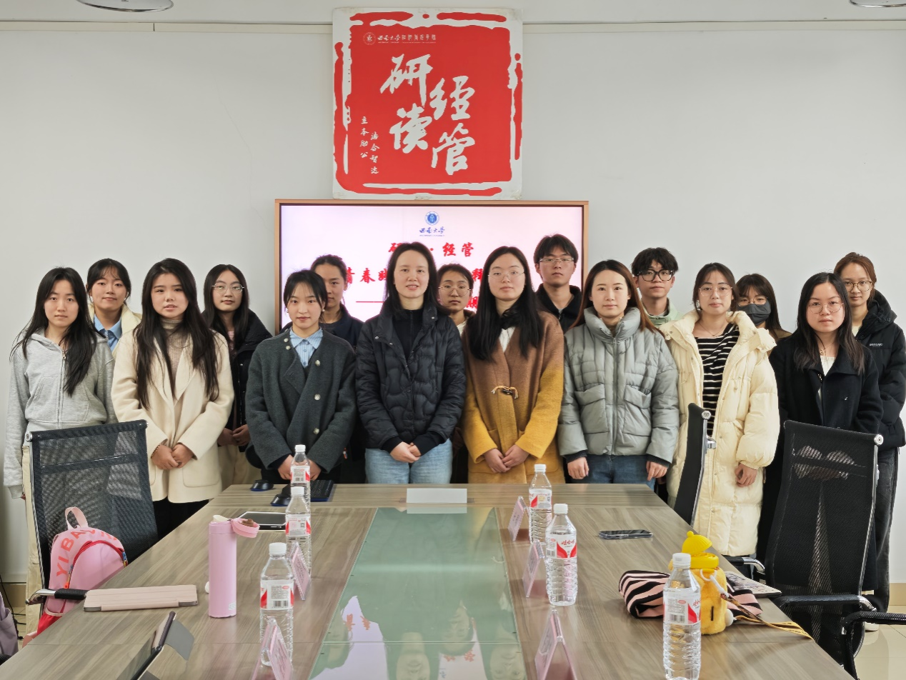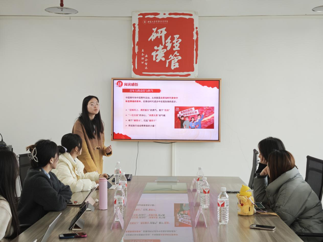 2025年3月14日下午,新葡的京集团35222vip“研读·经管”读书会第二十七期在新葡的京集团35222vipA406教室顺利举行。本次读书会以“青春践使命 奋斗释担当”为主题。由公司2023级农业管理专业硕士研究生苏紫涵、区域经济学专业硕士研究生吴双虹和2024级企业管理专业硕士研究生曾璐瑶、农村发展专业硕士研究生陆逸担任主讲人,研究生辅导员任娟出席活动并作总结。本次读书会由2024级金融专业硕士研究生刘楠主持。
