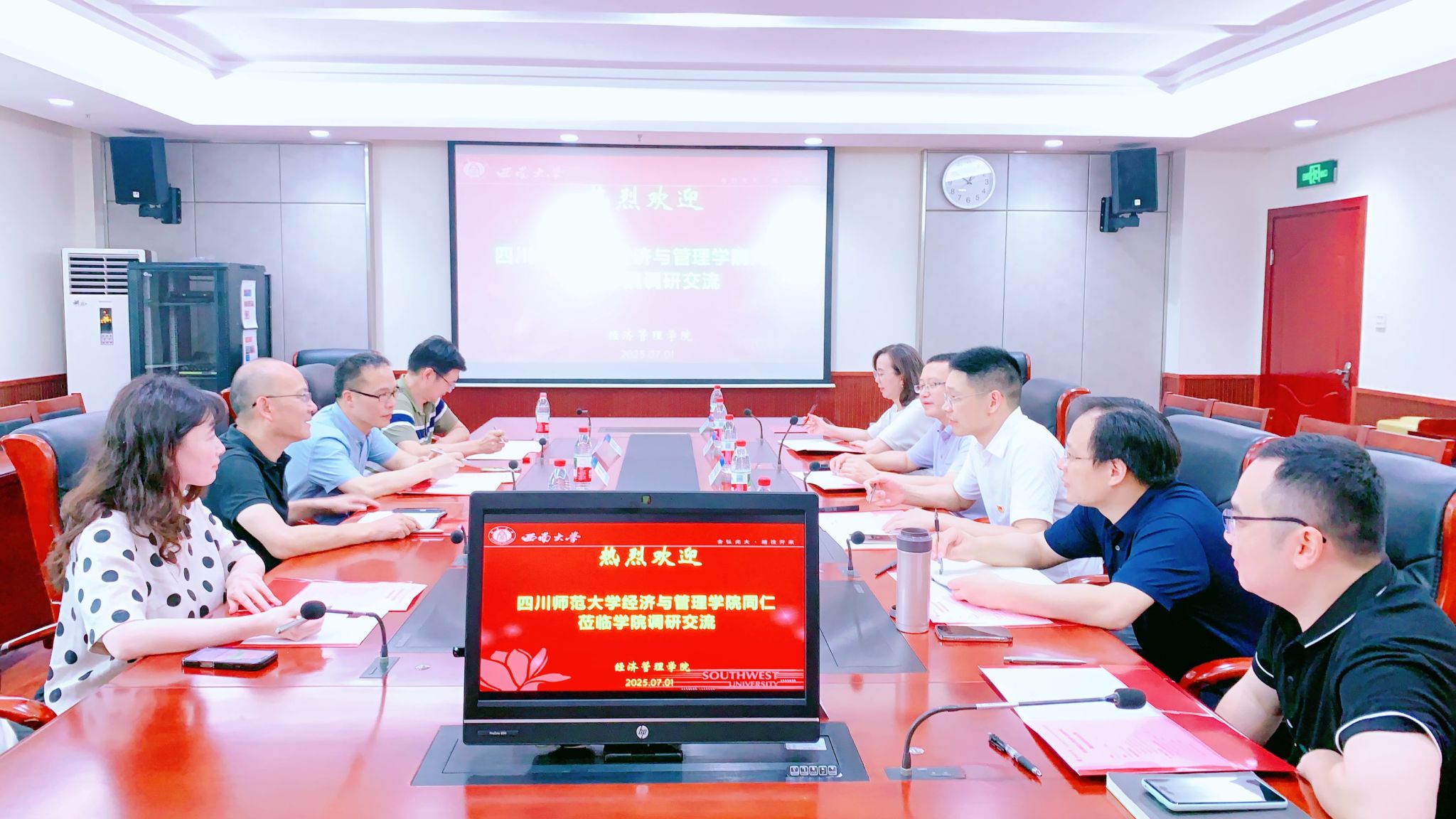 7月1日下午,新葡的京集团35222vip黄宇峰副经理一行4人莅临公司交流座谈。公司副经理王小华、学科与科研办公室主任刘建新、工商管理系副主任高伟、MBA教育中心副主任王双龙、工商管理系教师石声萍和教学工作办公室主任胡华出席交流座谈会。