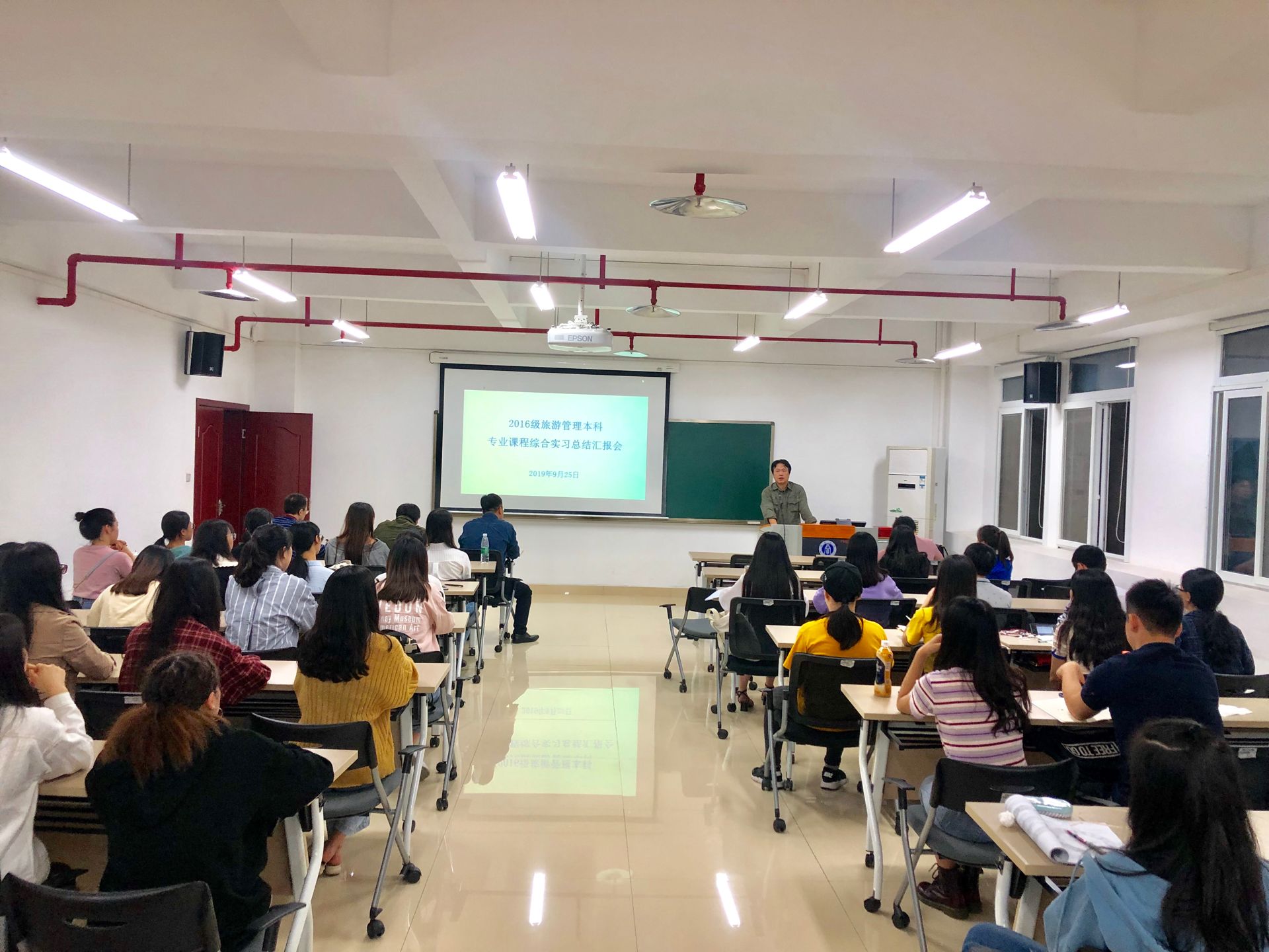 2019年9月25日19时,2016级旅游管理本科专业课程综合实习总结汇报会在新葡的京集团35222vipA602室准时召开,高远东副经理代表公司出席,旅游管理系主任向旭、实习指导教师秦远好、黎霞和牟松参加,会议由牟松老师主持。