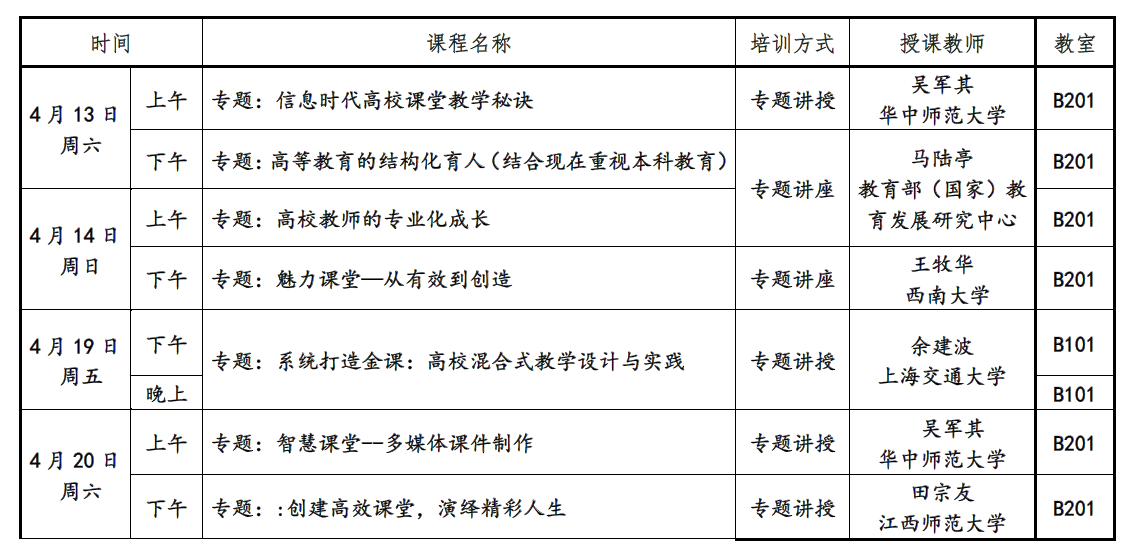 新葡的京集团35222vip本科教学研修班课表