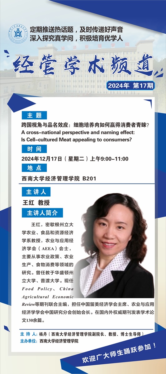 农林经济管理学科发展论坛 | 跨国视角与品名效应:细胞培养肉如何赢得消费者青睐?