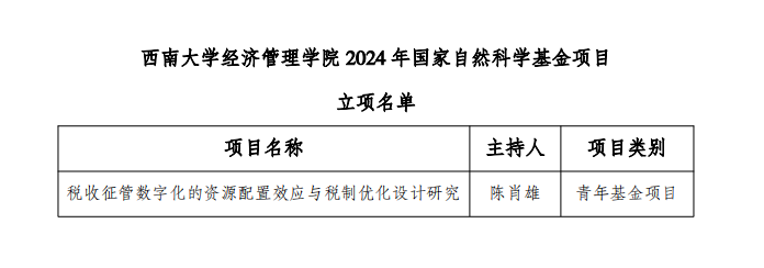 国家自然科学基金委员会公布了2024年国家自然科学基金年度项目立项名单。公司青年教师陈肖雄博士获得国家自然科学青年基金项目立项。