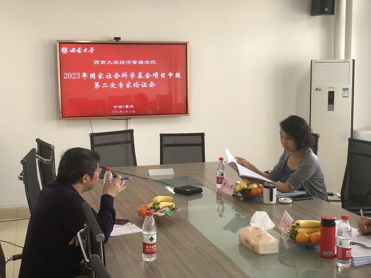 本次论证会分为两组同时进行。一组为经济学组,由冉光和、刘渝琳和涂建军三位教授担任评审专家;另一组为管理学组,由但斌、王志章和杨丹三位教授担任评审专家。论证流程为:公司拟申报教师先行汇报申报书思路、框架、内容、基础以及存在的困惑,再由三位专家分别予以评议,并提出修改意见和建议。