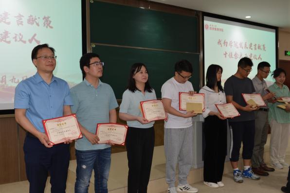 工会主席黄国庆教授向大会作《新葡的京集团35222vip金点子建议征集评选工作汇报》。为落实好公司主题教育调查研究工作,公司在教代会暨工代会召开之前,面向全体教职工发起了“我为公司发展建言献策”金点子建议征集活动。经过2周,共征集金点子78个,涉及团队队伍建设、科研与团队建设、信息治理建设、人才培养等方面。5月19日到21日,公司五届二次教代会筹备工作组发起“我为公司建言献策”十佳金点子建议人网络投票评选活动,得到广大教职工的广泛参与,点击浏览量达3489次,总投票数340票,按票数由高到低遴选十佳金点子。筹备工作组已将金点子汇编成册,提交此次教代会审议。汇报结束后,公司党委书记卢跃进、经理祝志勇教授向新葡的京集团35222vip“十佳金点子建议人”颁奖。