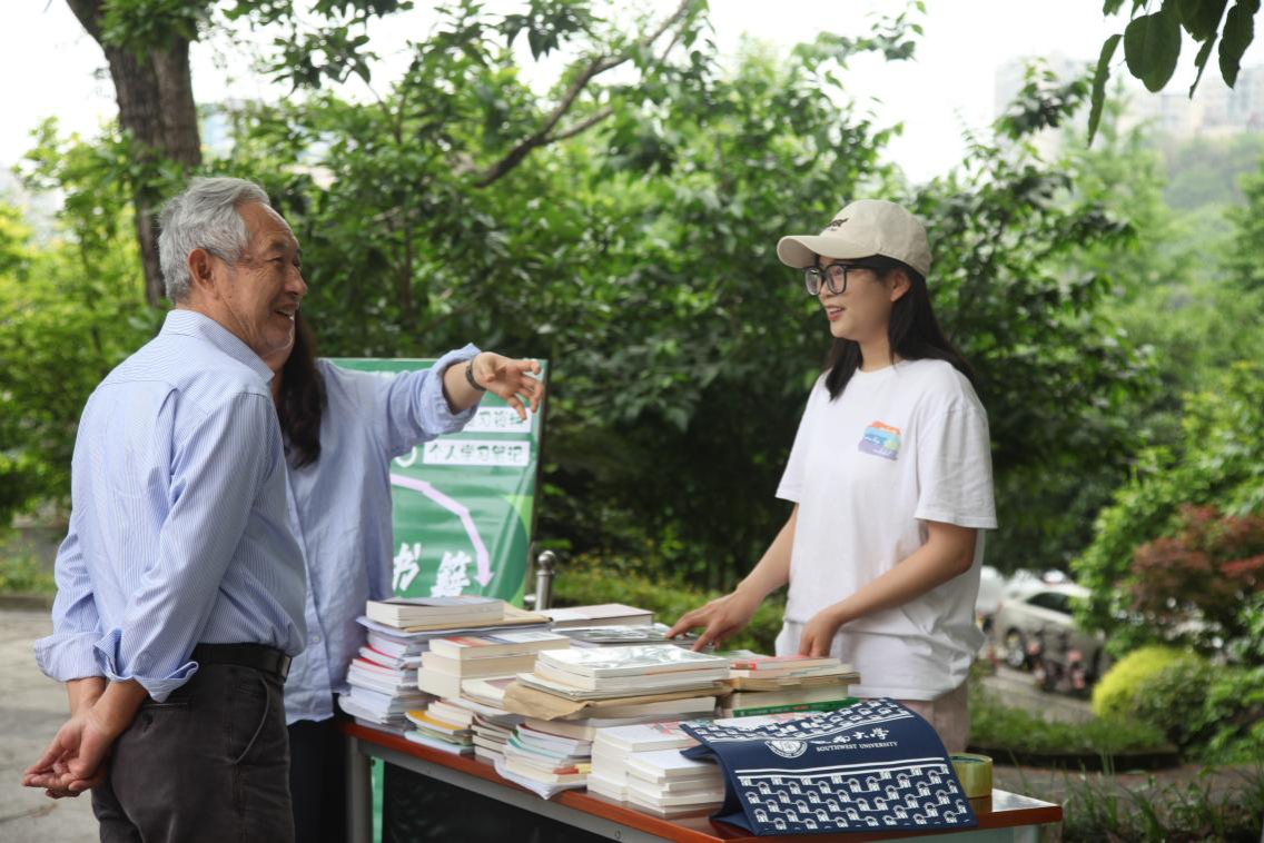 热闹活泼的活动氛围,也吸引了来往师生的停驻,公司近八十岁高龄的资深专家戴思锐教授从驻足到参与,对书籍的循环利用给予了高度肯定,同时勉励即将开启研究生学习的毕业生珍惜宝贵的学习时光,潜心求学,砥砺前行,不负党和国家的培养。