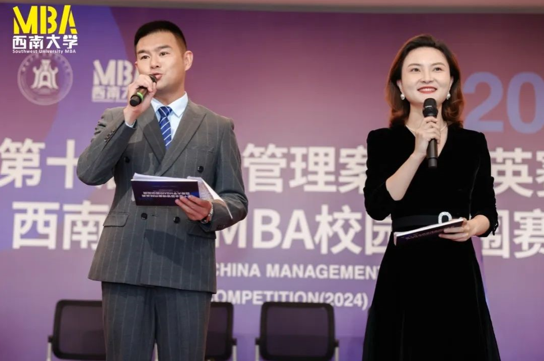 重庆亿琅投资管理有限公司罗东秋董事长、公司邓宗兵教授、杨刚教授、石声萍副教授、刘向强副教授、范昕老师组成B101赛场专家评审团,公司案例中心主任石声萍为评审团主席,陶雅老师、唐健老师、史轩亚老师以案例指导老师的身份莅临比赛现场。B101赛场的主持人是2023级大成班郭均颖、杨诗其。