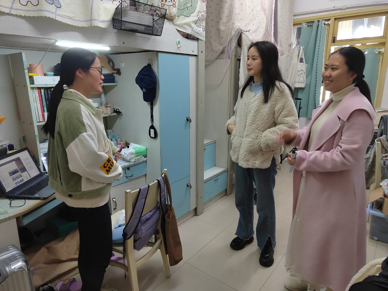 为深入了解员工宿舍消防安全卫生状况,辅导员前往宿舍园区进行寝室走访。在走访中,老师们关心同学们期末的学习和生活情况,排查了寝室消防用电等安全隐患,并再次强调了日常安全注意事项。