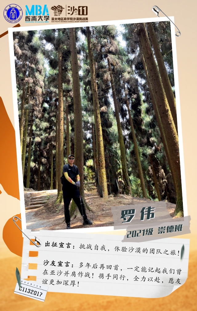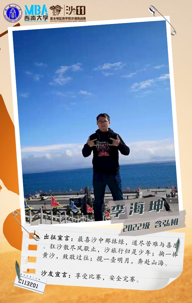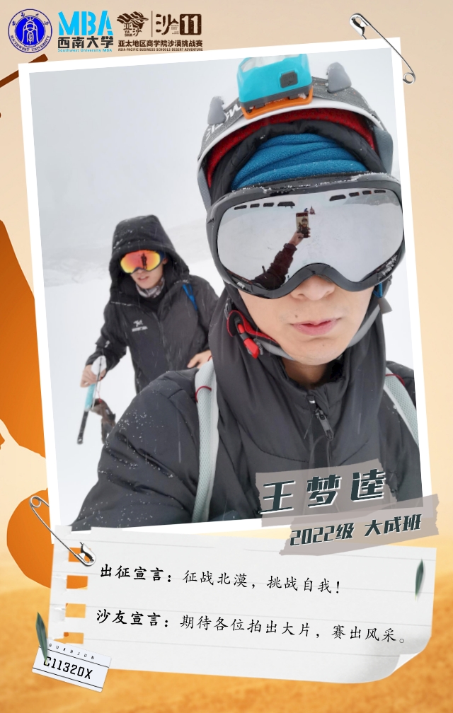 他在敦煌有过一次沙漠徒步经历,在MBA亚沙宣讲中了解亚沙后,果断报名参加沙11。