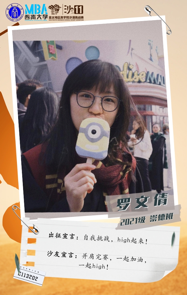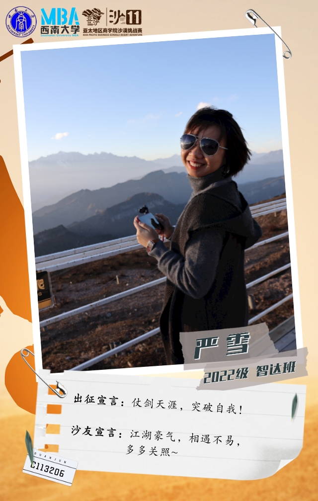 与西大MBA相遇,这种呼唤与感召将在亚沙的旅程变成现实,她坚信:人生的奇遇就是不同维度地对神秘进行探索!她既是C队成员,也是沙11新葡的京集团35222vip的随行记者。
