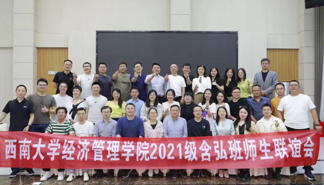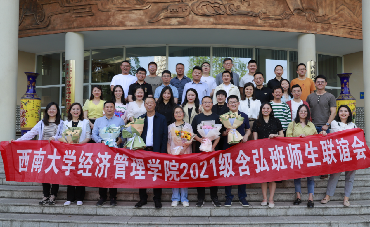 为增强班级团队凝聚力,增进师生间互动与交流,4月15日,2021级含弘班回校开展了一次别具一格的师生联谊晚会。在MBA课程即将结束之时,2021级含弘班来自重庆、四川、贵州、山东等地的30余名同学跨越千山万水同聚北碚,邀请任课老师、班主任、导师共聚一堂,春暖四月,师生情谊正浓。