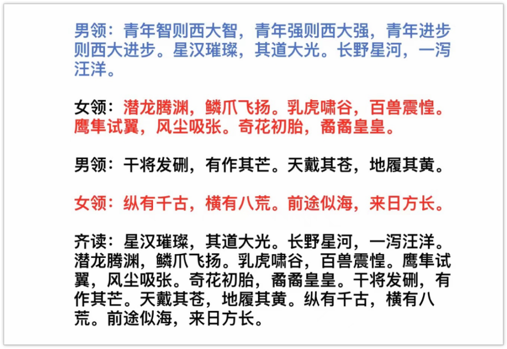 首先为同学们带来的表演是来自1组和2组的四季主题——春之诗歌朗诵《西大青年说》。