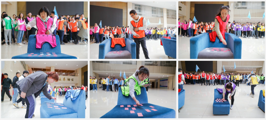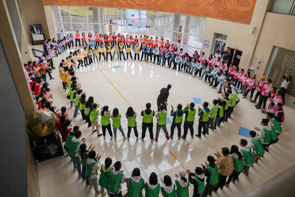 3月12日,2021级崇德1班和2班联合素质拓展活动在公司一楼大厅举办。