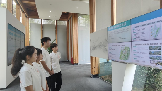 7月3日下午,锦城实践队来到暑期实践的第一站——天府新区公园城市展示厅。公园城市展示厅位于兴隆湖绿地以西的鹿溪智谷山顶处,集内容展示、场景体验、管理配套功能于一体,是全球首个以公园城市为概念的展示厅。展示厅一共包含序厅、总览厅和实践厅三个板块,分别呈现了公园城市的建设路径、美好场景和实践建设工作。在工作人员的带领下,队员们通过沙盘模型、电子展板、宣传片等形式,多维度、全方位地了解了天府新区的发展历程、发展现状、未来图景,充分感受了公园城市的先进理论内涵、规划设计以及美好生态风光。最后队员们走上观景台,偌大的兴隆湖尽收眼底,天府绿道蜿蜒湖畔,数字经济产业环湖而生,队员们不禁感叹,“真是一座建在公园里的城市啊!”