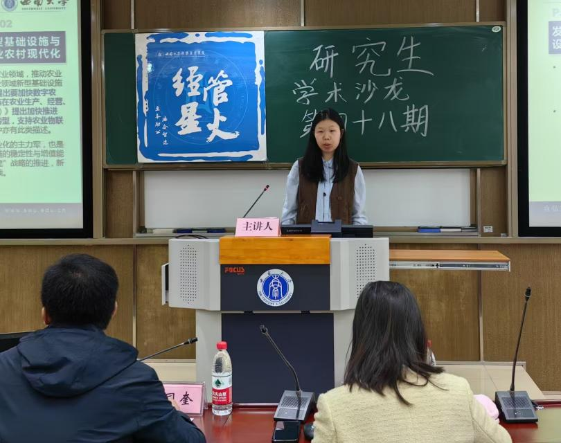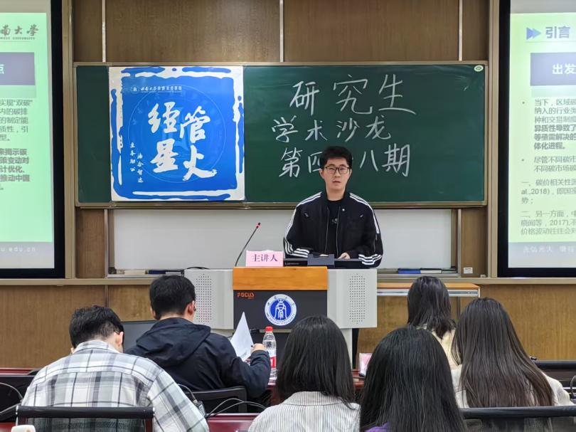 4月11日上午,新葡的京集团35222vip第四十八期“经管·星火”研究生学术沙龙在公司B304教室举行。本次学术沙龙由2023级农业经济管理专业硕士研究生洪德雨同学、金融专业硕士研究生孟维宇同学、金融学专业硕士研究生李明睿同学担任报告人,公司高静老师、于同奎老师担任点评嘉宾。本次学术沙龙活动由2024级产业经济学专业硕士研究生方晶晶同学主持。