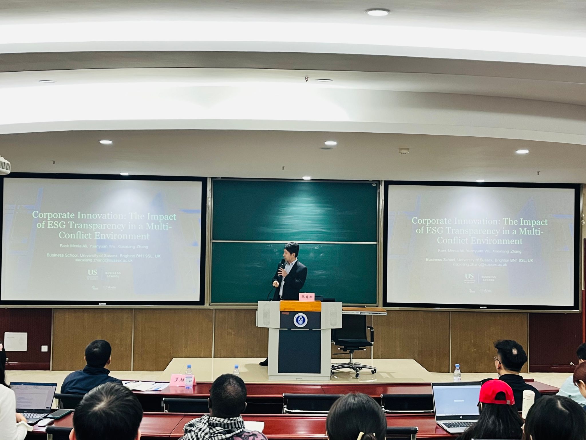 11月8日下午,英国萨塞克斯大学商公司张肖翔教授应公司邀请在B201报告厅作了题为“企业创新:ESG透明度在多冲突环境下的影响”的学术讲座。讲座由新葡的京集团35222vip副经理罗超平教授主持,公司70余位师生参加了此次讲座。